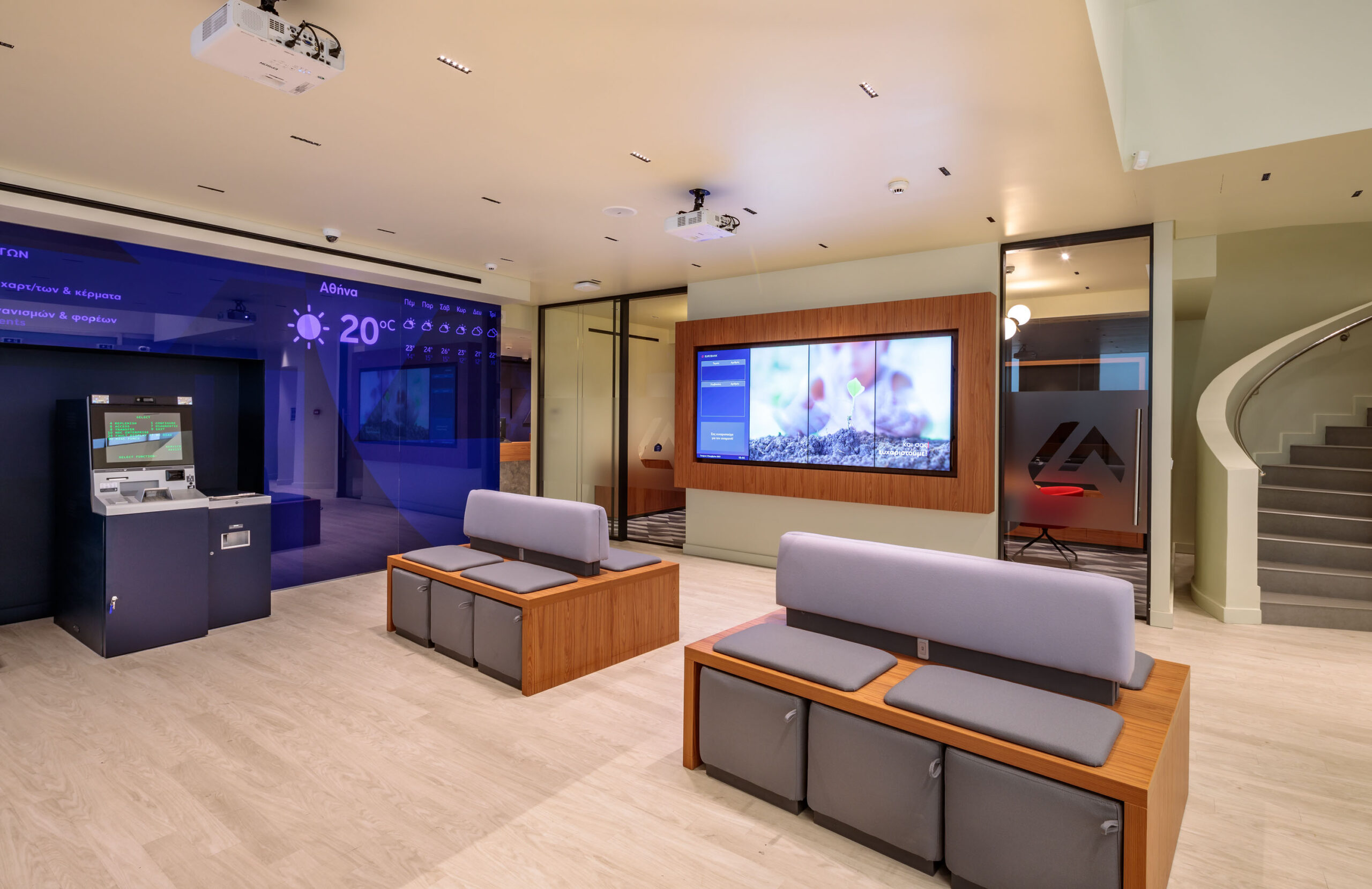 Σε ένα χώρο πρωτοπορίας και εξέλιξης. Γυάλινες διαδραστικές επενδύσεις τοίχων με δυνατότητα προβολής.